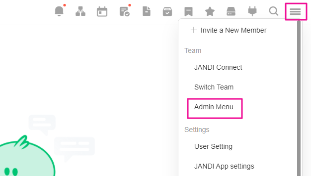 Go to the upper right corner of your JANDI screen and select [≡] > [Admin Menu].