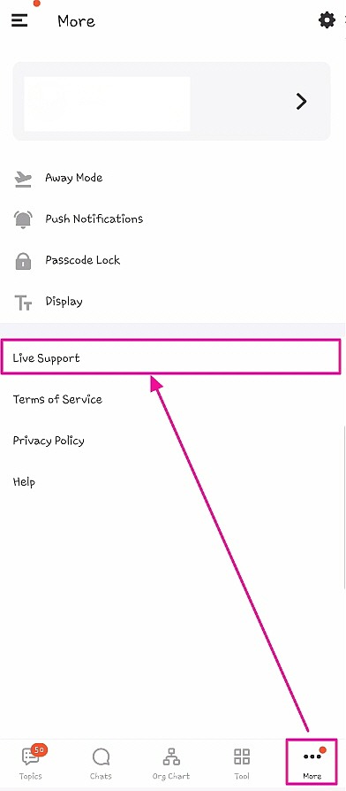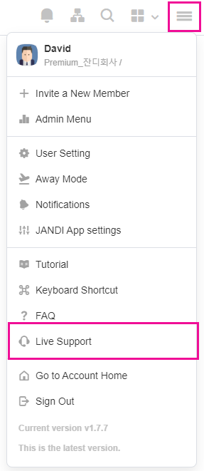 Go to the upper right corner of your JANDI screen and select the menu [≡] icon. Then click [Live Support].