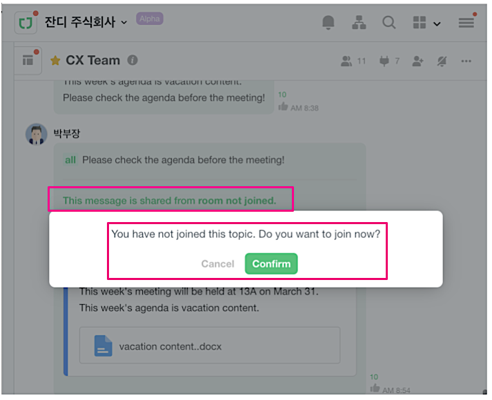 If you did not participate in the shared chat room, you could see the screen and the pop-up message as shown below.