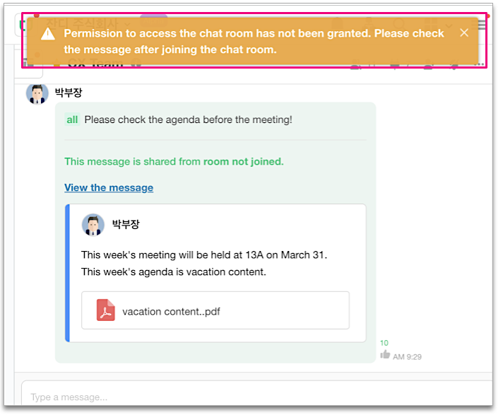 If you want to see the attached files or go to the shared chat room, click View Messages or the referenced area!