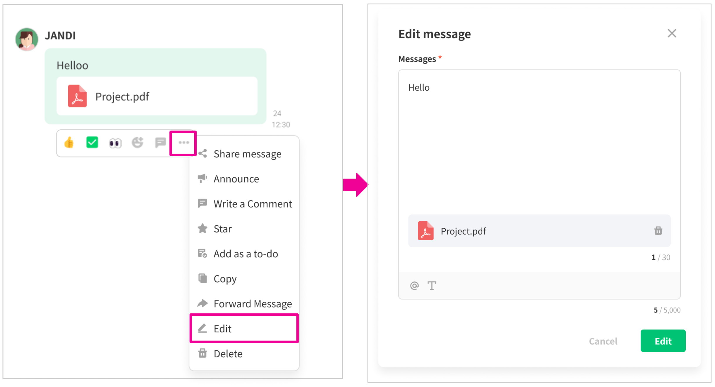 Now, you can edit messages to correct typos and delete files.