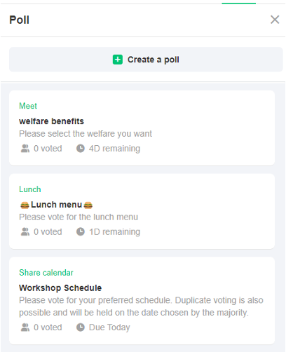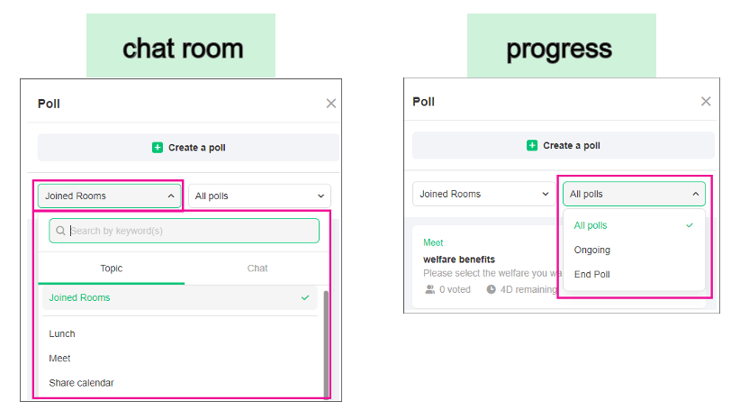 You can select chatrooms or the poll status as filters to view the polls.