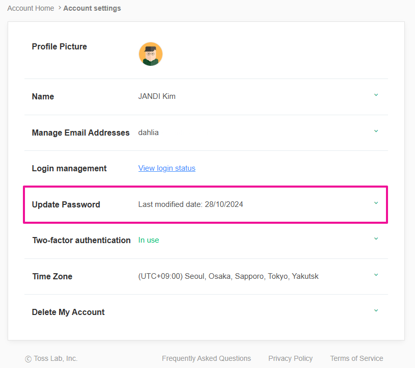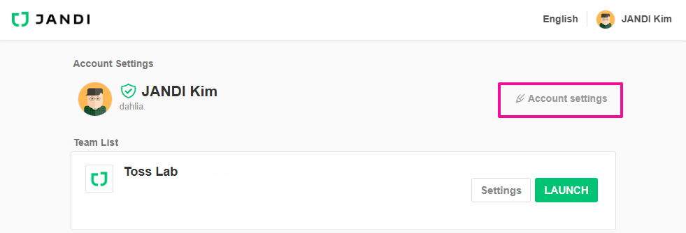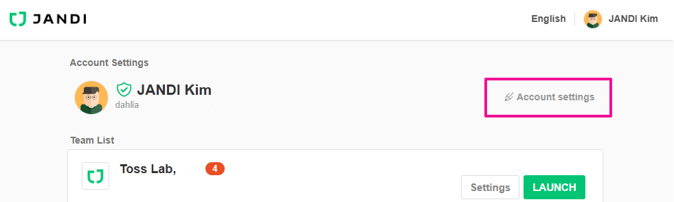1. JANDI Account Home > Account Settings