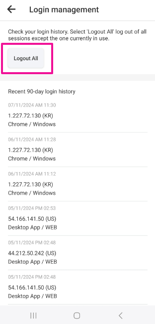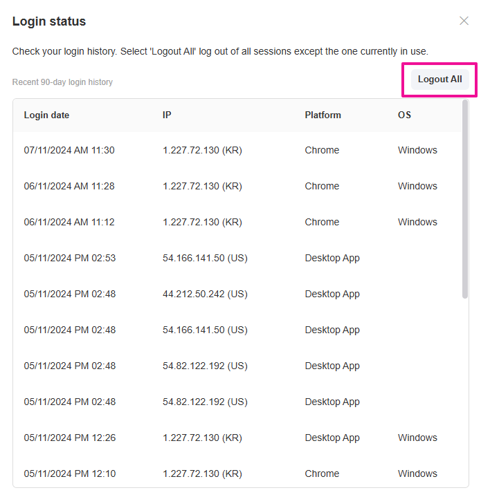 3. Check your login history, and select [Logout All].