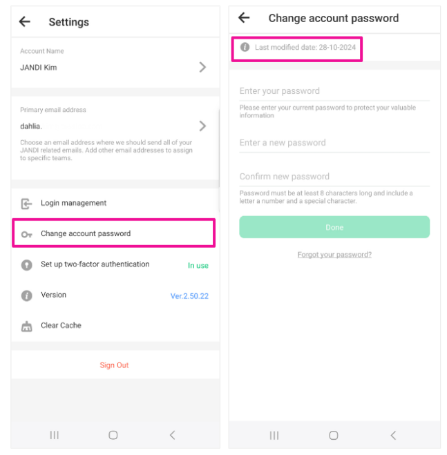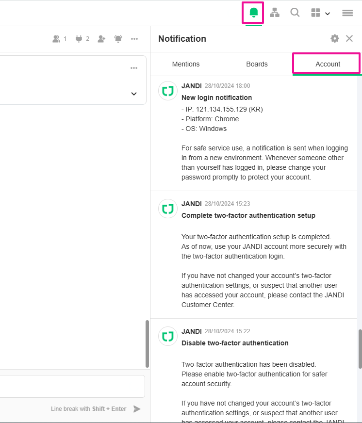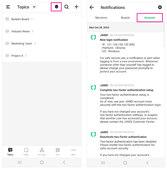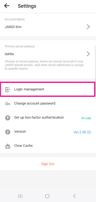 A new feature has been added to check and manage login account information to enhance JANDI's security.