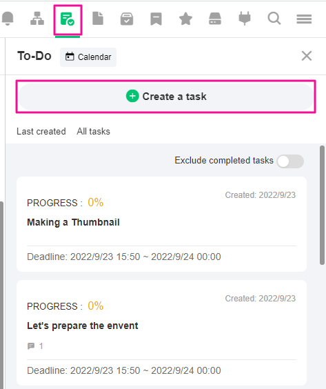 1. Select the [To-do] icon on the menu tab to open your tasks. Click [+ Create a Task].