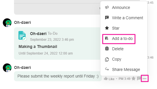 You can also add a message as a to-do.