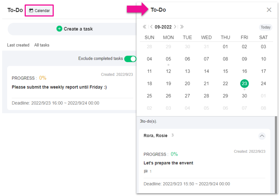 Click the [Calendar] to view your tasks on the calendar.