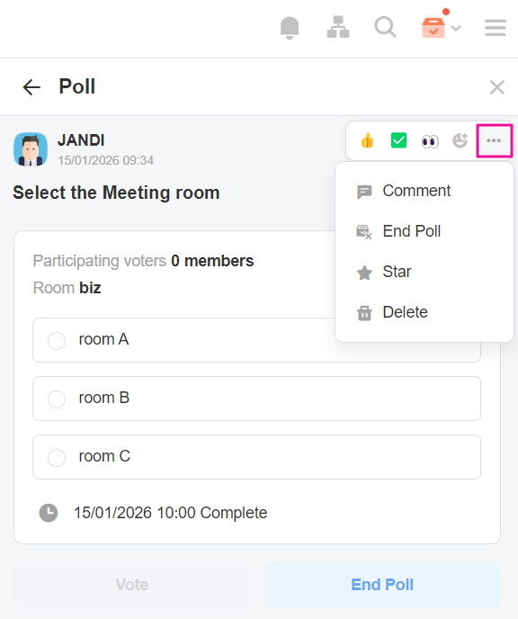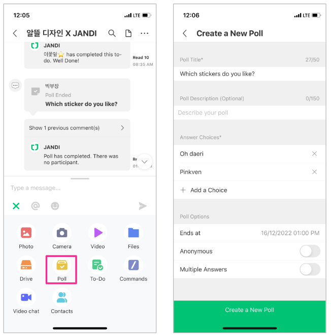 Or choose the [Poll] under the message bow to create a poll in JANDI.