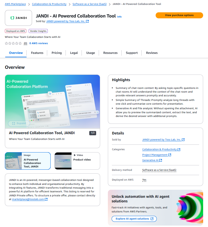 JANDI - AI Powered Collaboration Tool available in AWS Marketplace