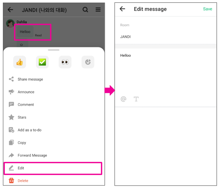 Long-tap the message you wish to edit and choose [edit].