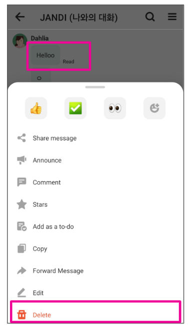 Long-tap the message you wish to delete and choose [delete].