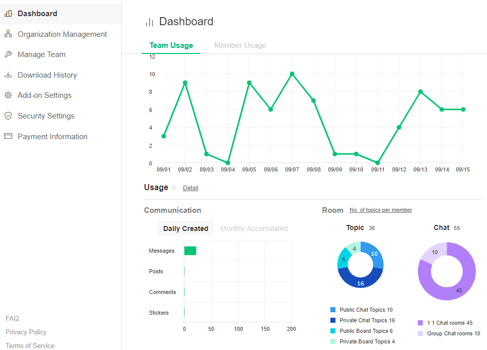The Team Admin of teams using the Premium plan can see how much data your team has used. The Team Admin of teams using the Enterprise plan can view data information not only for the entire team but also for individual members.