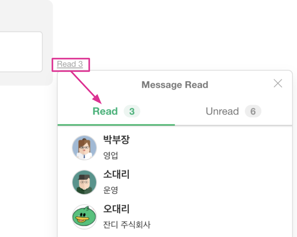 The read receipt shows you the number of people that have read your message. Besides, you can view the list of people that have read your message! This way, requesting tasks and grasping the work progress can be more flexible.