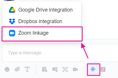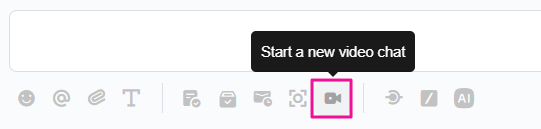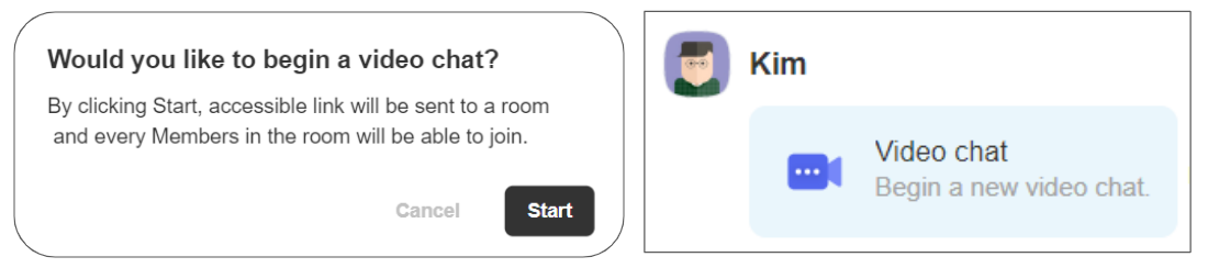 Select the [Start a new Video chat] icon at the message input box to send a video chat message. This feature is available on PC and mobile and allows video chat with 300 participants.