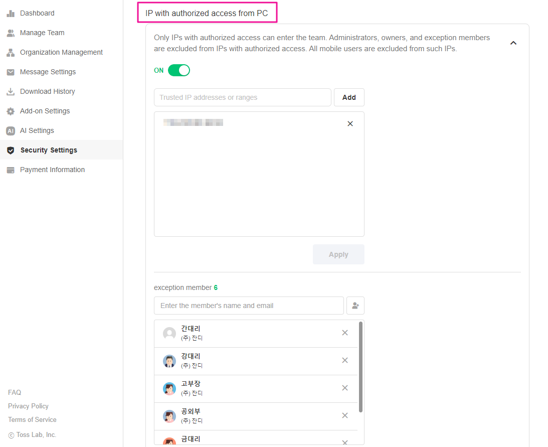 This feature will only allow users with trusted IP addresses to access your JANDI team.