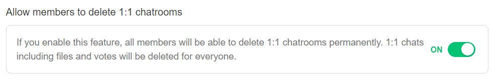 The Team Admin can turn this setting on. Once this setting is on, all members will be able to delete 1:1 chat rooms permanently.