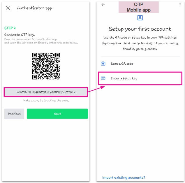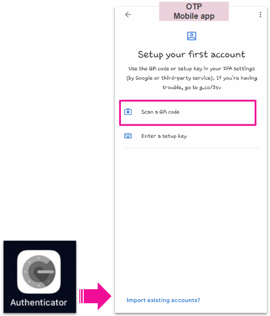 Search for ‘OTP’ on your mobile app store to download the app. There are many types of OTP apps but we recommend the Google Authenticator app.