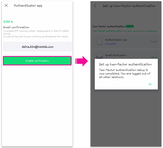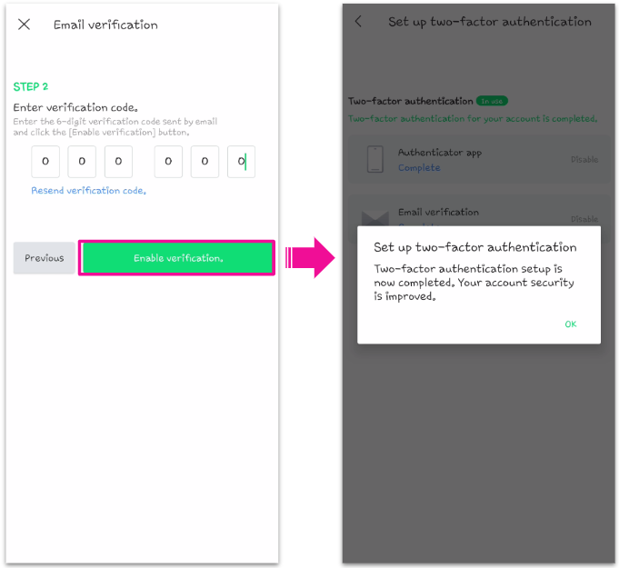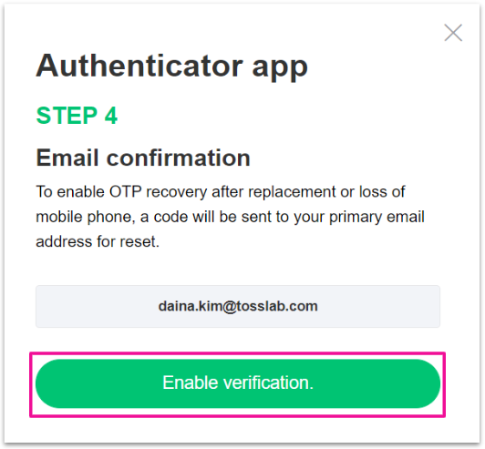 5. Press the [Enable Verification] button to finish the two-step verification.