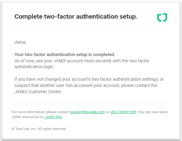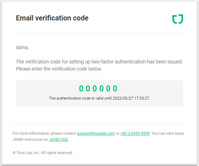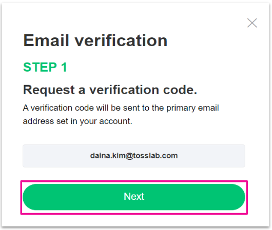 3. JANDI will send the verification code to your primary JANDI email address. After you make sure the email address is correct, select [Next].