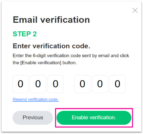 3. Fill in the 6-digit verification code from your email and press [Enable Verification].