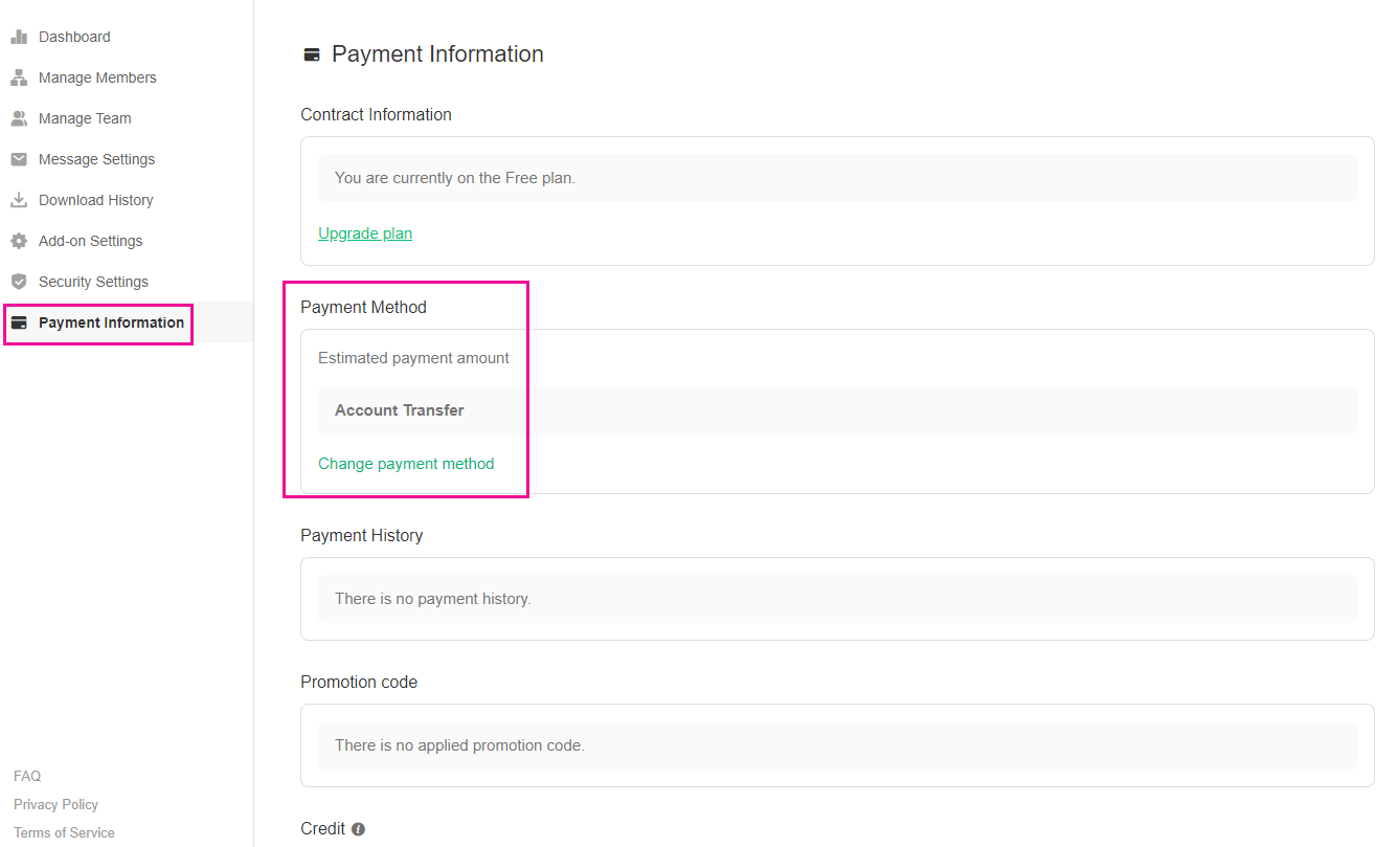 📍The amount shown in the contract information is the basic subscription fee excluding credits, discounts, etc., and may differ from the actual payment amount.