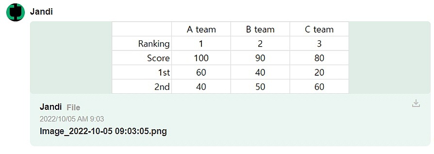 If you want to insert a table directly in JANDI, you can copy and paste the table as an image file.