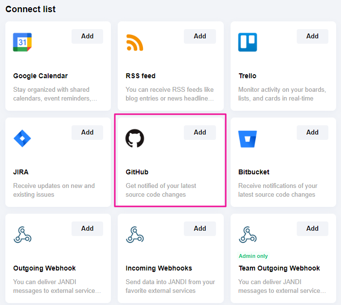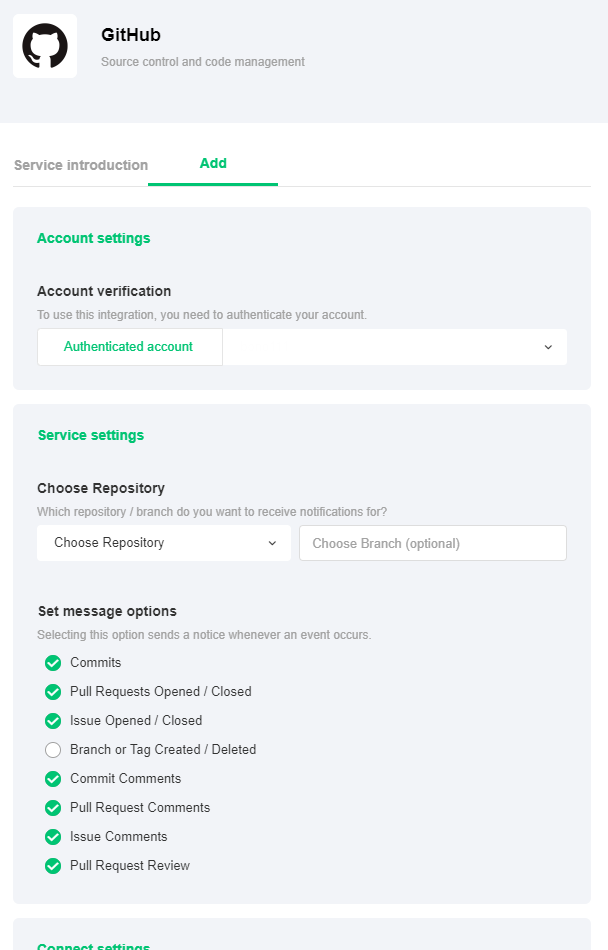 5. Choose the repository you wish to receive your notifications and where you want to send the notifications to (Topic or JANDI on Chats).