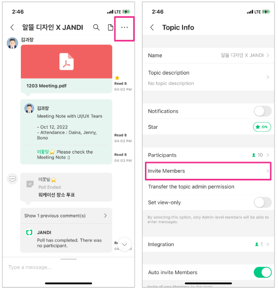 Select the [≡] icon located on the upper right corner of your Topic and select [Invite Members].