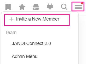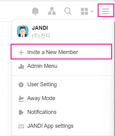 Select the [≡] icon on the upper right corner of the JANDI screen, and click on [+Invite a New Member].