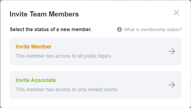 2. Select the status of the member you want to invite. You can invite a member as a Member or an Associate.