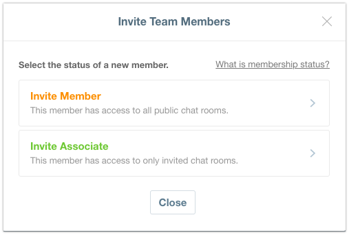 2. Select the status of the member you want to invite. You can invite a member as a Member or an Associate.