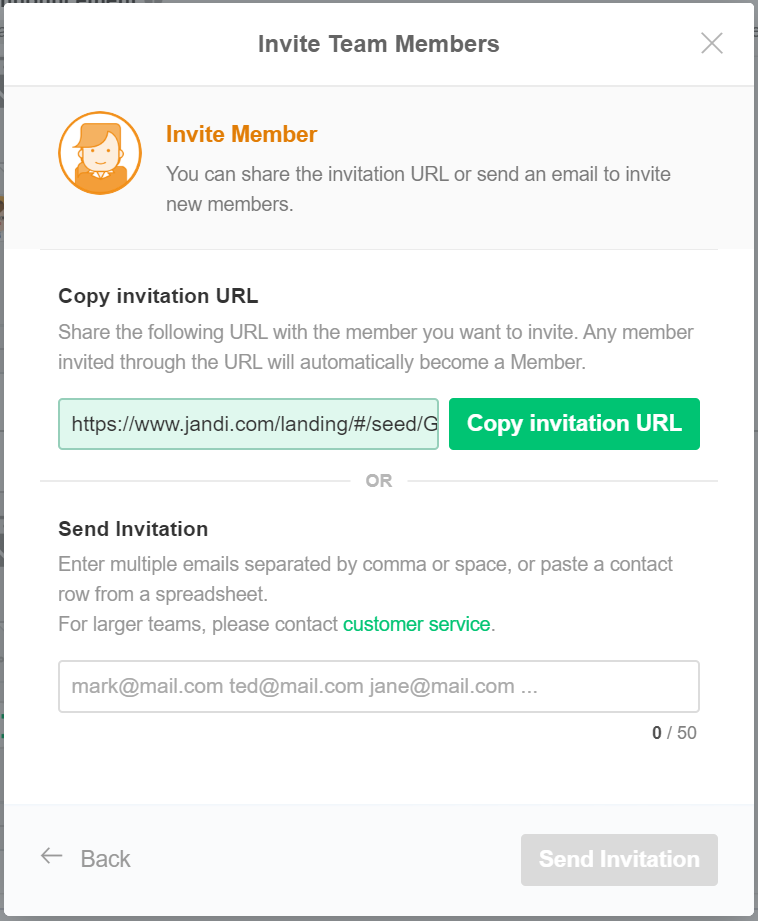 *The inbitation URL feature is available in Paid Plan