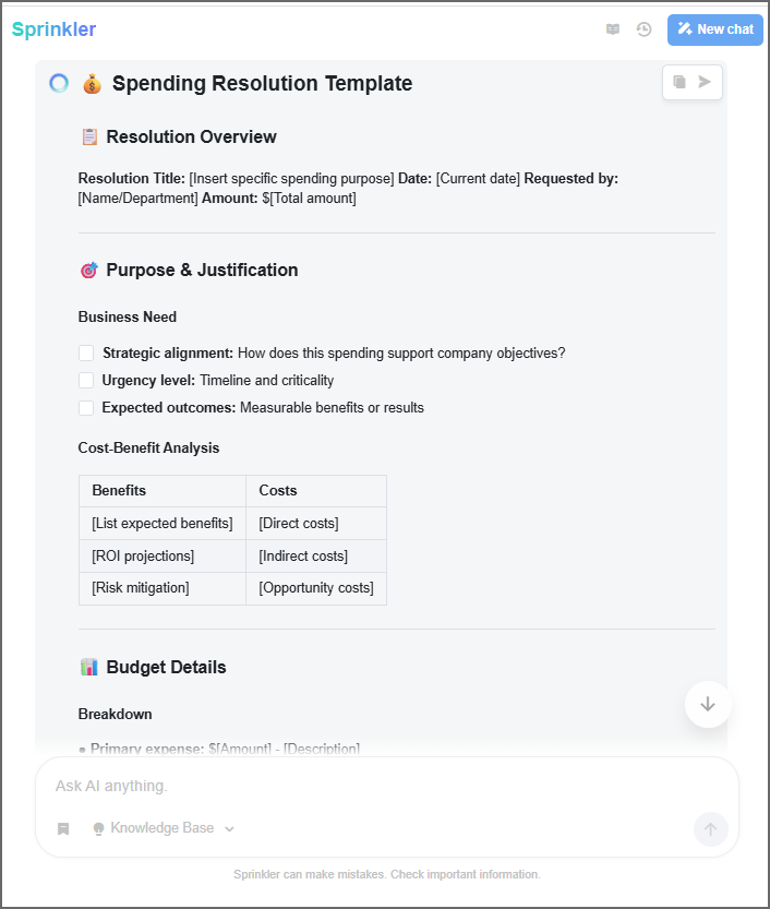 Need a document template? Ask Sprinkler!