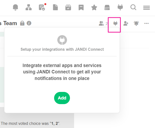 Click the [JANDI Connect] plug icon on the right menu bar or click the [Plug] icon in the upper right corner of the Topic.
