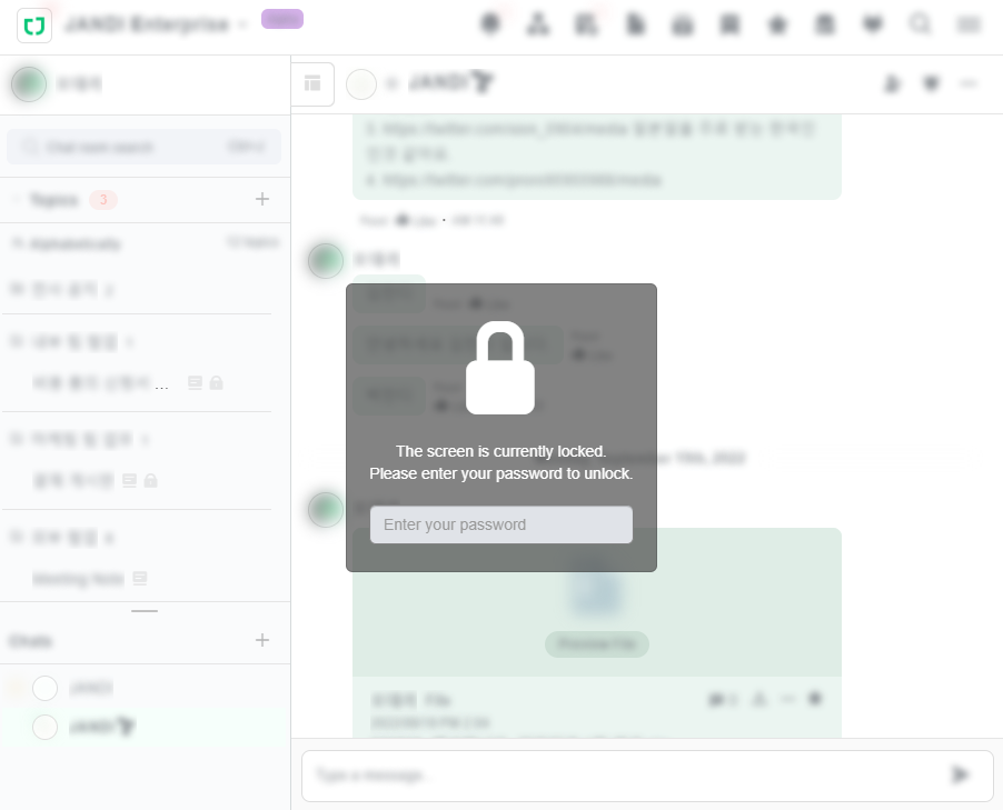 Do you wish to lock your JANDI screen while you are not at your desk? If you lock your JANDI, the screen will be blurred.