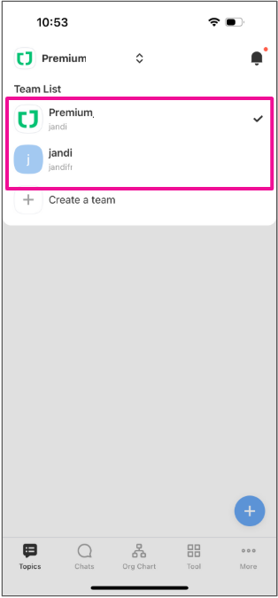 <Mobile> Tap on the [Team Name] icon on the upper left corner of your mobile JANDI app, and select the team you want to switch to.
