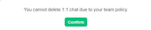 If your team doesn't allow deleting 1:1 chats, you will see the following message when you try to delete them.