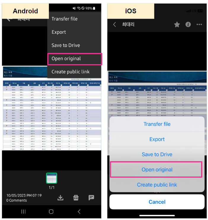 How to: Mobile image preview > Select the more [...] icon > View original file