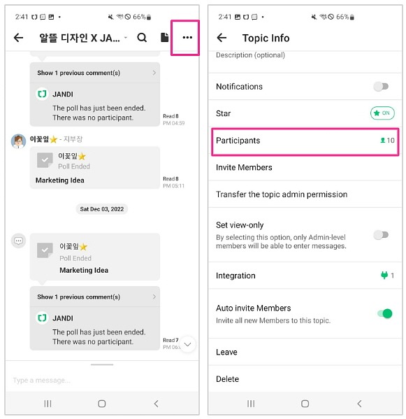 1. Select the [=] icon on the upper right corner of the Topic to select members you wish to remove.