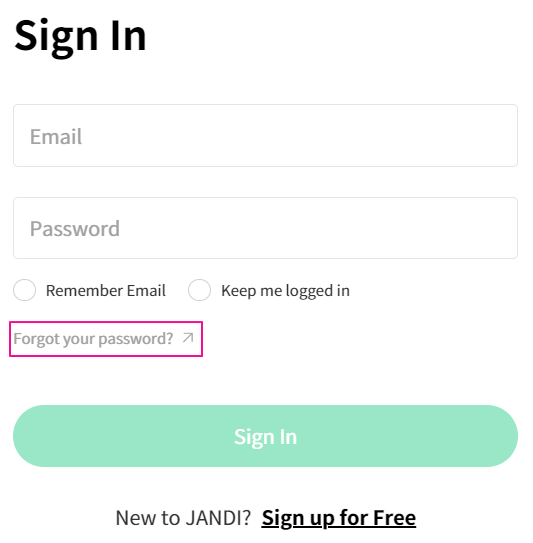 1. Click [Forgot your password↗], then enter the JANDI account email address to receive the password reset email.