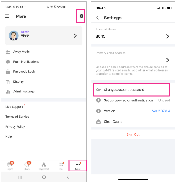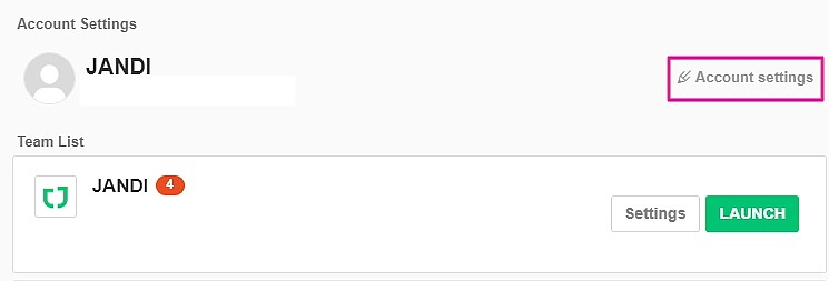 1. Go to the upper right corner of your JANDI screen and select the menu [≡] icon. Then choose [Go to Account Home].