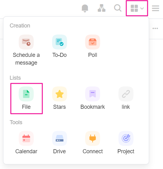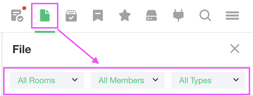1. Upper right corner of your JANDI screen, select the file icon to view the list of files.