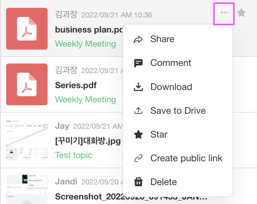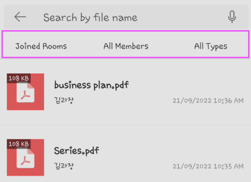 In JANDI, you can view the list of uploaded files and search using different search filters.
