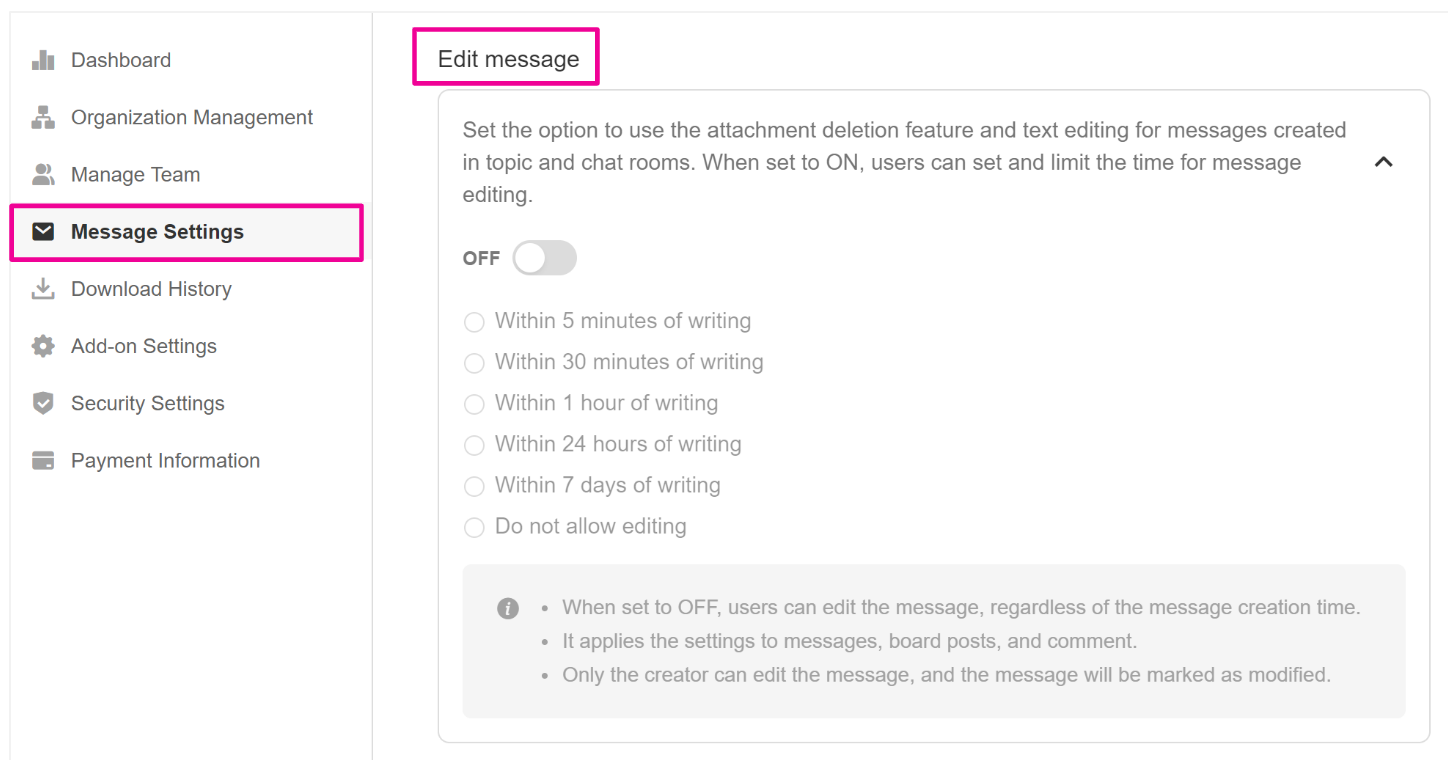 2. [Message Settings] > Turn [Edit Message] to ON.