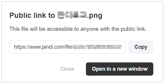 2. Once the public link is generated, copy the URL and share it outside of JANDI. * Click on the file name to view the file details. Here you can see where the file is shared in, and the file’s public link.