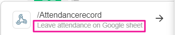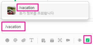 If you use the word 'attendance' as a trigger word, it will be shown in the message input box like below. Type in '/' in the message input box or select the slash button and select the trigger word you want.