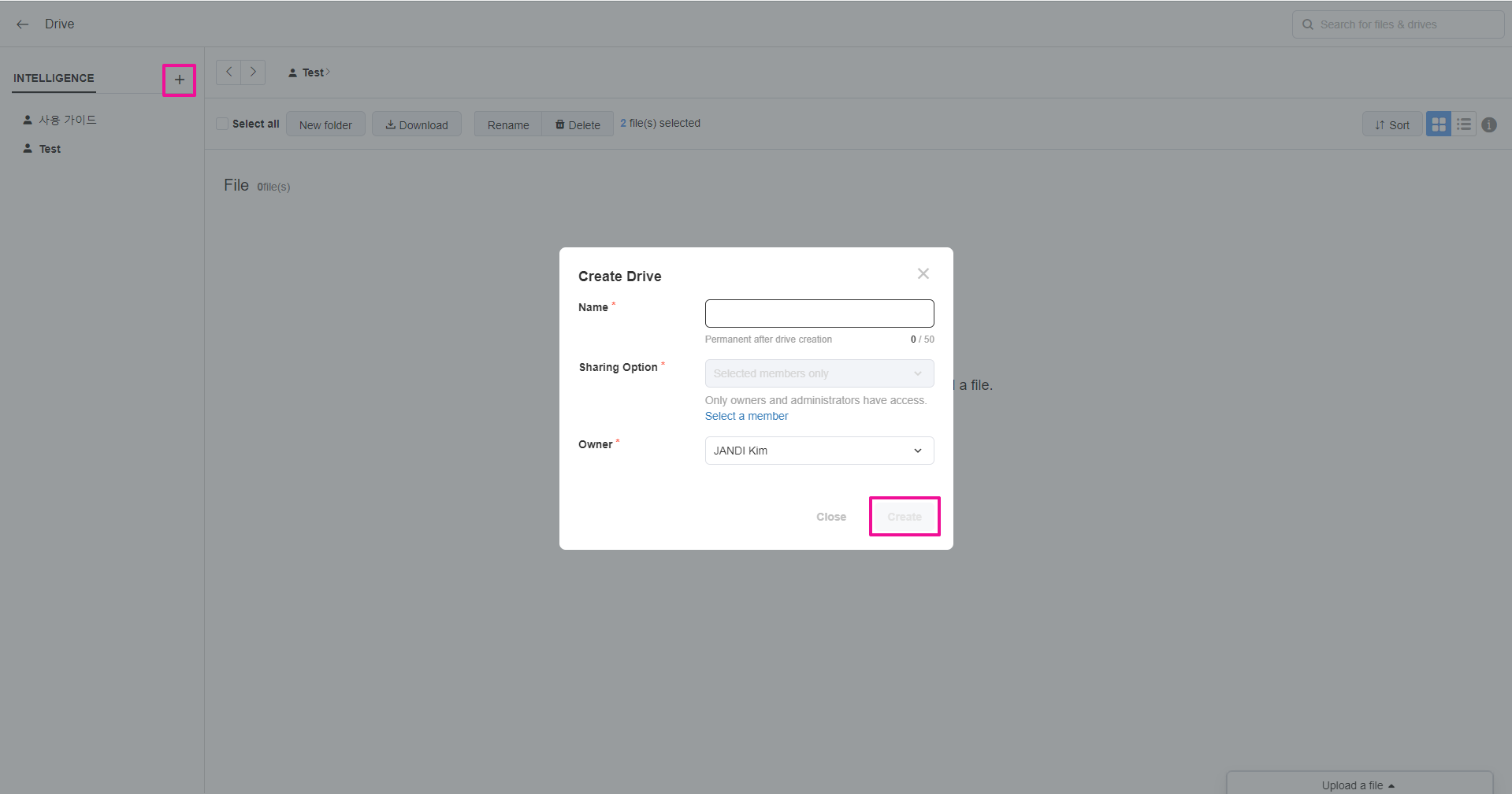 Important: The Knowledge Base Drive can only be used after configuring members in [≡] (top right) → [Admin menu] → [AI Settings] → [Knowledge Base Manager].