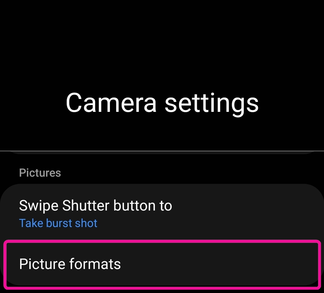 Settings → Camera → Camera Settings → Picture formats