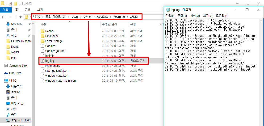 Enter %userprofile%\AppData\Roaming\JANDI in the address bar